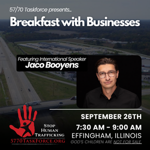 Keller Convention Center 1202 N. Keller Dr., Effingham, IL, United StatesJoin us for an impactful morning from 7:30 AM to 9:00 AM at the Keller Convention Center. Enjoy breakfast while gaining valuable insights from our featured speaker, Jaco Booyens. Jaco will shed light on the harsh realities of sex and human trafficking and share actionable steps we can take to combat and prevent these crimes […]